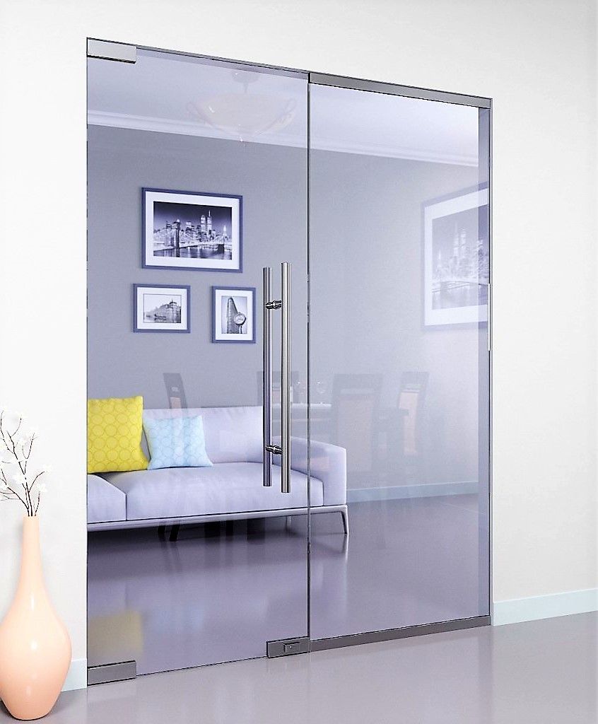 Противопожарная безрамная дверь со стеклом в гостиную в Серпухове